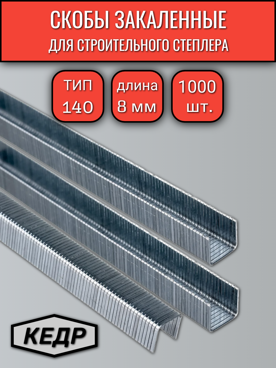 Скобы для степлера Кедр 8мм 1000шт. тип-140 информация: