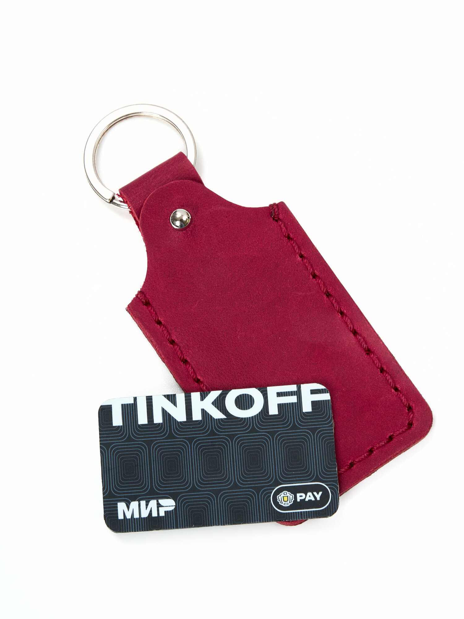 Чехол-брелок Красный из нат. кожи КрейзиХорс для ключей ПИК, метки Starline, для стикеров банков 700 ₽
