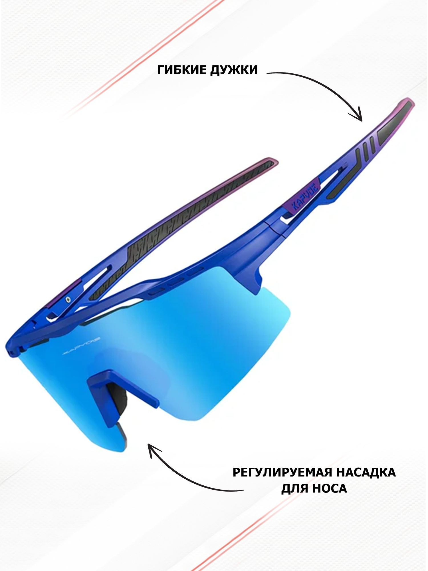 Очки спортивные солнцезащитные Kapvoe с защитой от UV400 с защитой от UV400, цвет голубой, белый, красный cиней линзой 2 650 ₽