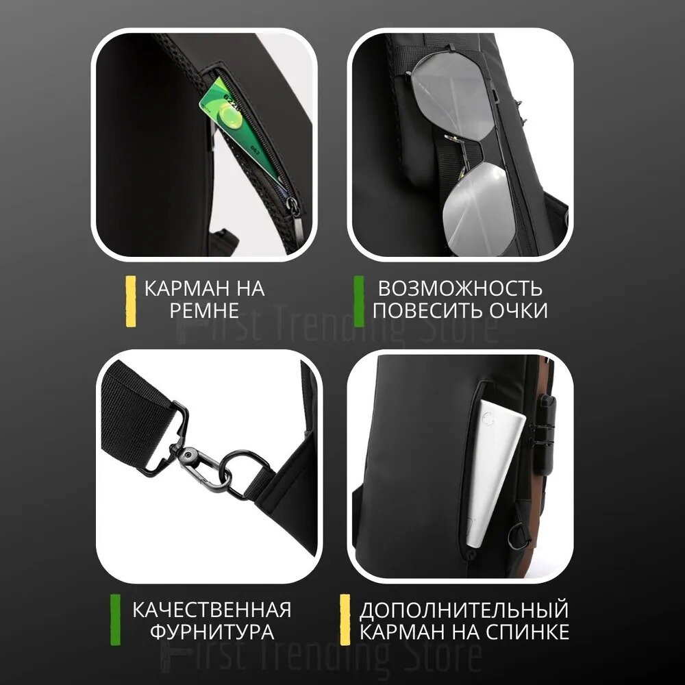 Сумка мужская через плечо спортивная кросс-боди, Черно-золотая 1 036 ₽
