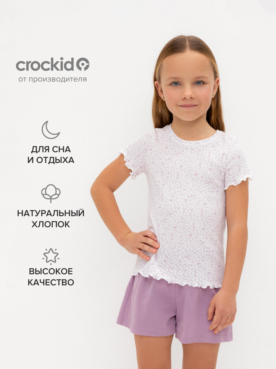 Комплект пижамы для девочки, Crockid К 1622-1/бледно-лиловый, цветочки пижама дет р 76/146
