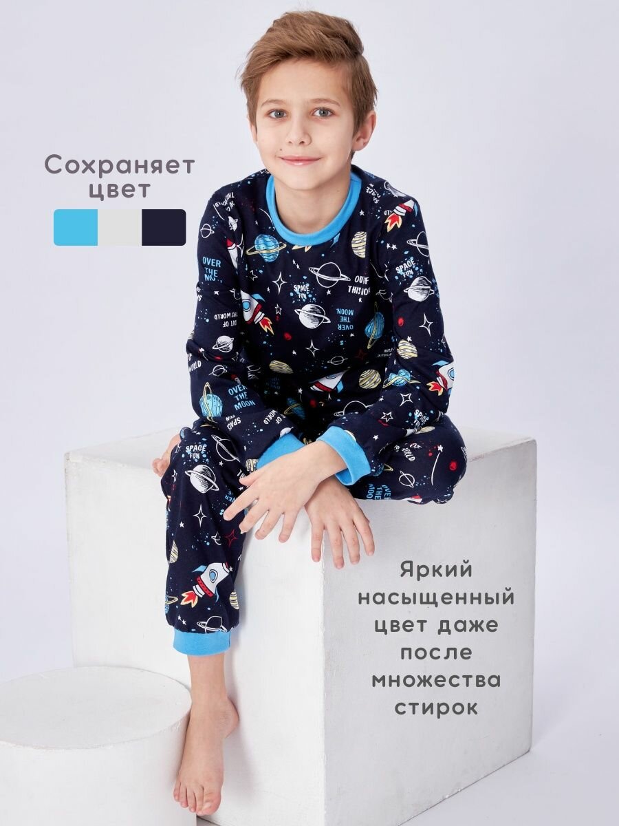 Пижама Веселый малыш, размер 140, синий, 93/17/Ракета 995 ₽