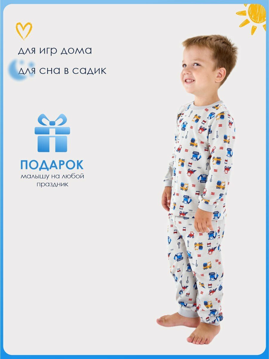 10 цен на Пижама Веселый Малыш Маленький строитель, размер 80, синий, желтый, красный, серый