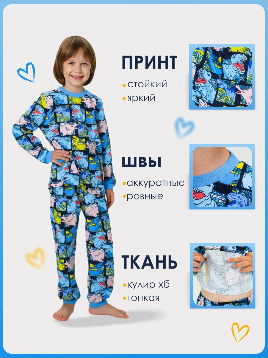 Пижама Веселый малыш, размер 134, голубой, 93/17/Dinosaur 897 ₽