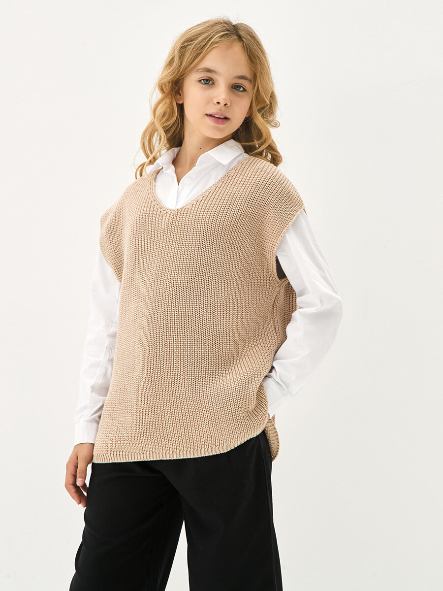 Школьный жилет Kogankids, размер 122-128 / 7-8 лет, бежевый информация: