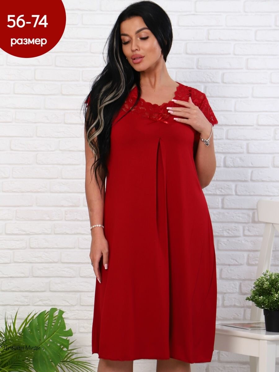 Домашняя ночная сорочка из вискозы с кружевом, размер 58 1 355 ₽