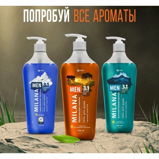 Отзывы на Гель для душа Grass Milana MEN Африканская саванна, с маслом виноградных косточек, 750 мл