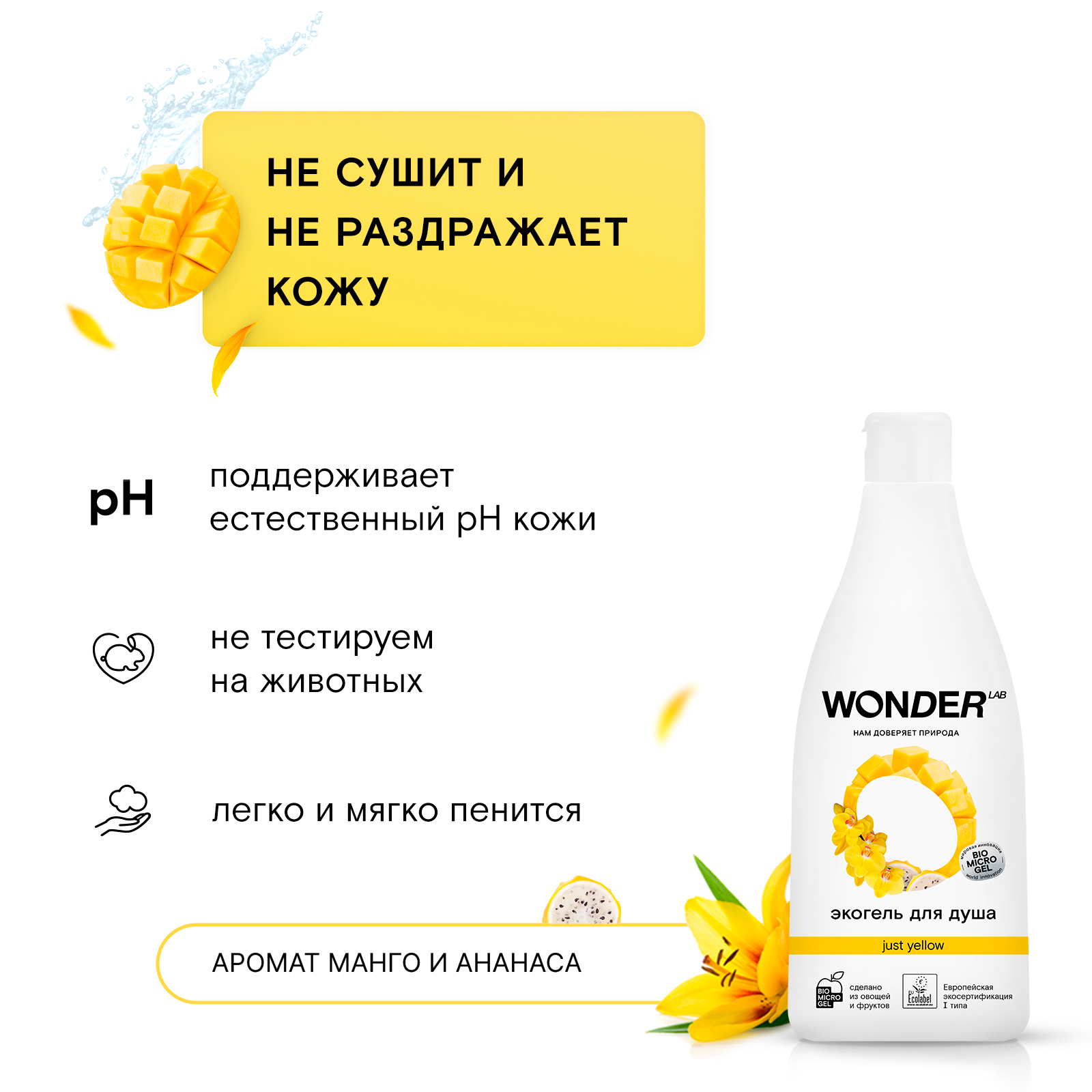 WONDER LAB Гель для душа Just yellow с ароматом тропических фруктов, 550 мл 435 ₽