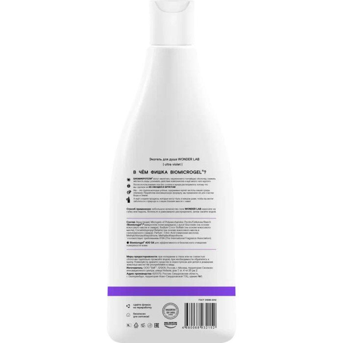 WonderLab Экогель для Душа (ultra violet) 0,55 л информация: