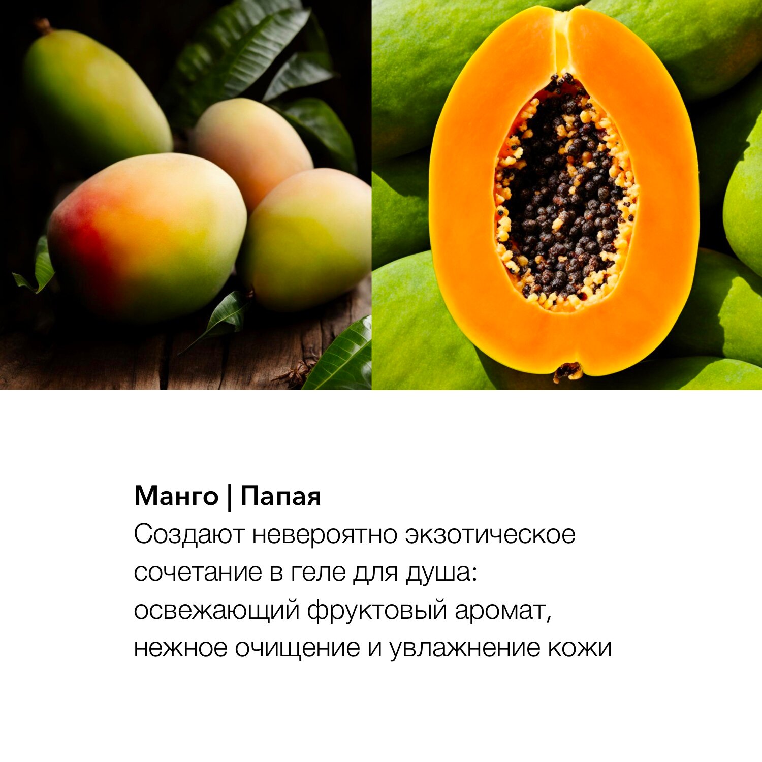 | Масла и экстракты | ароматическая смесь из масел / кокосовое масло / масло какао / масло лайма / масло манго / масло мяты / масло франжипани / масло ши (карите) / миндальное масло / экстракт камелии / экстракт манго / экстракт маракуйи |