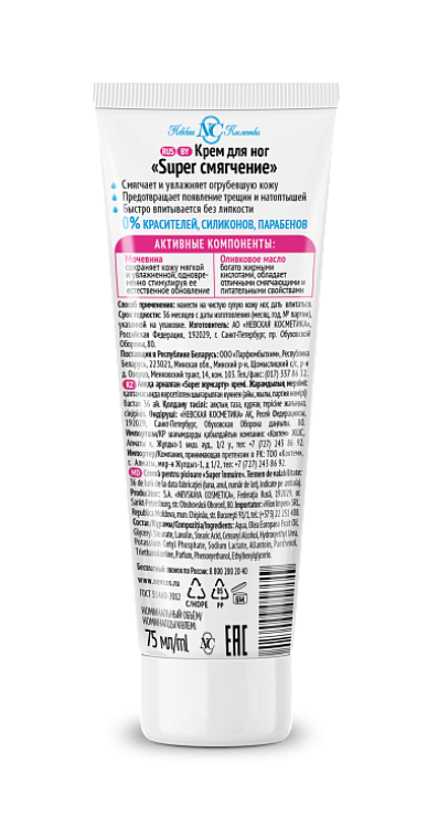 Крем Невская косметика для ног Время для Себя Любимой, Super смягчение, 75мл - 2 штуки информация: