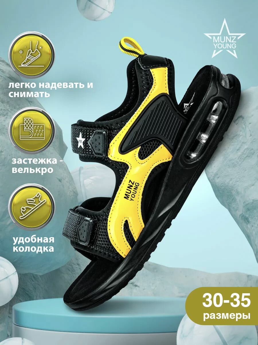 Сандалии MUNZ YOUNG, размер 32, черный, желтый 3 099 ₽