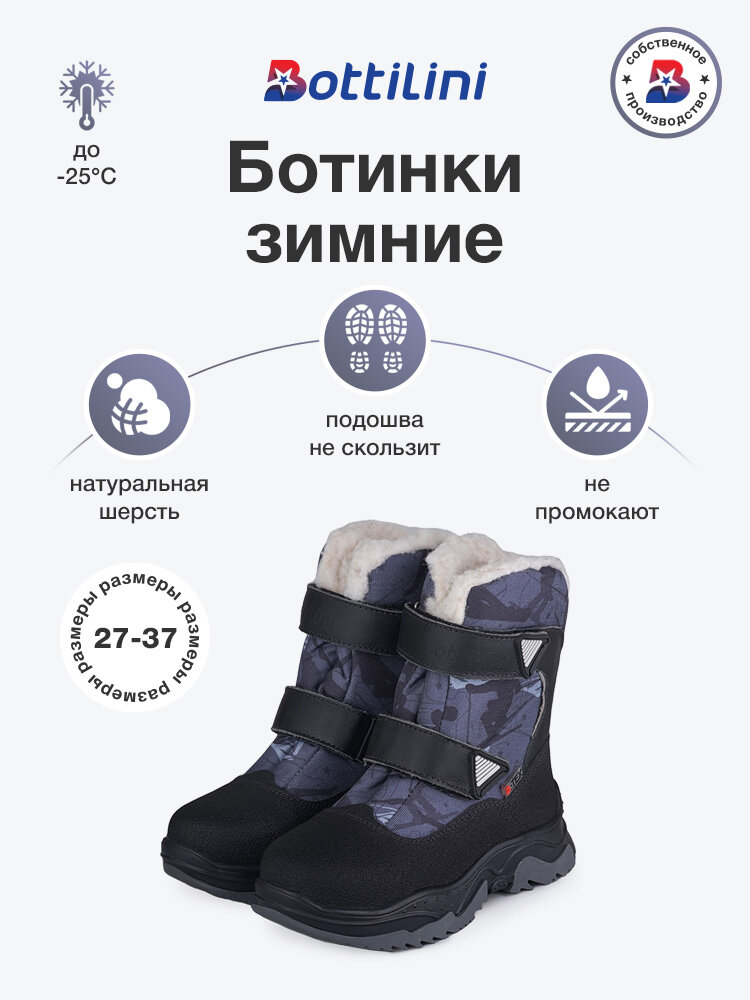 BL-300(53) р.30 черный+серый Ботинки зимние на мальчика "Bottilini" 4 570 ₽