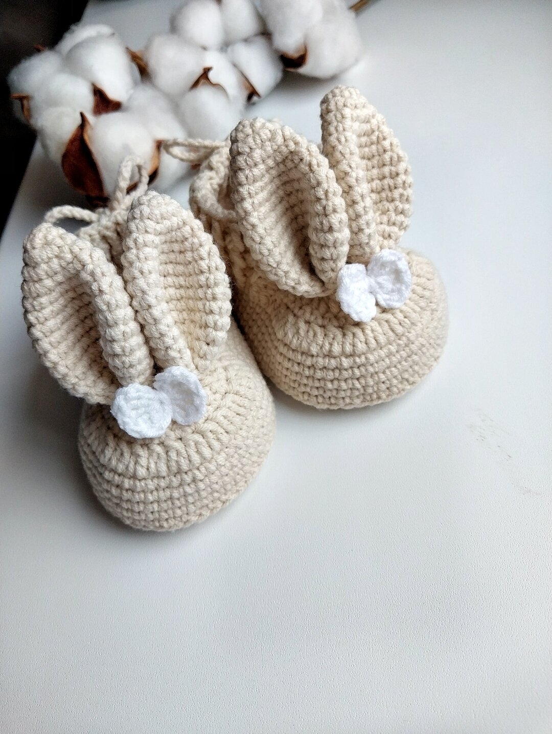 Пинетки для девочки зайка белые для новорожденного