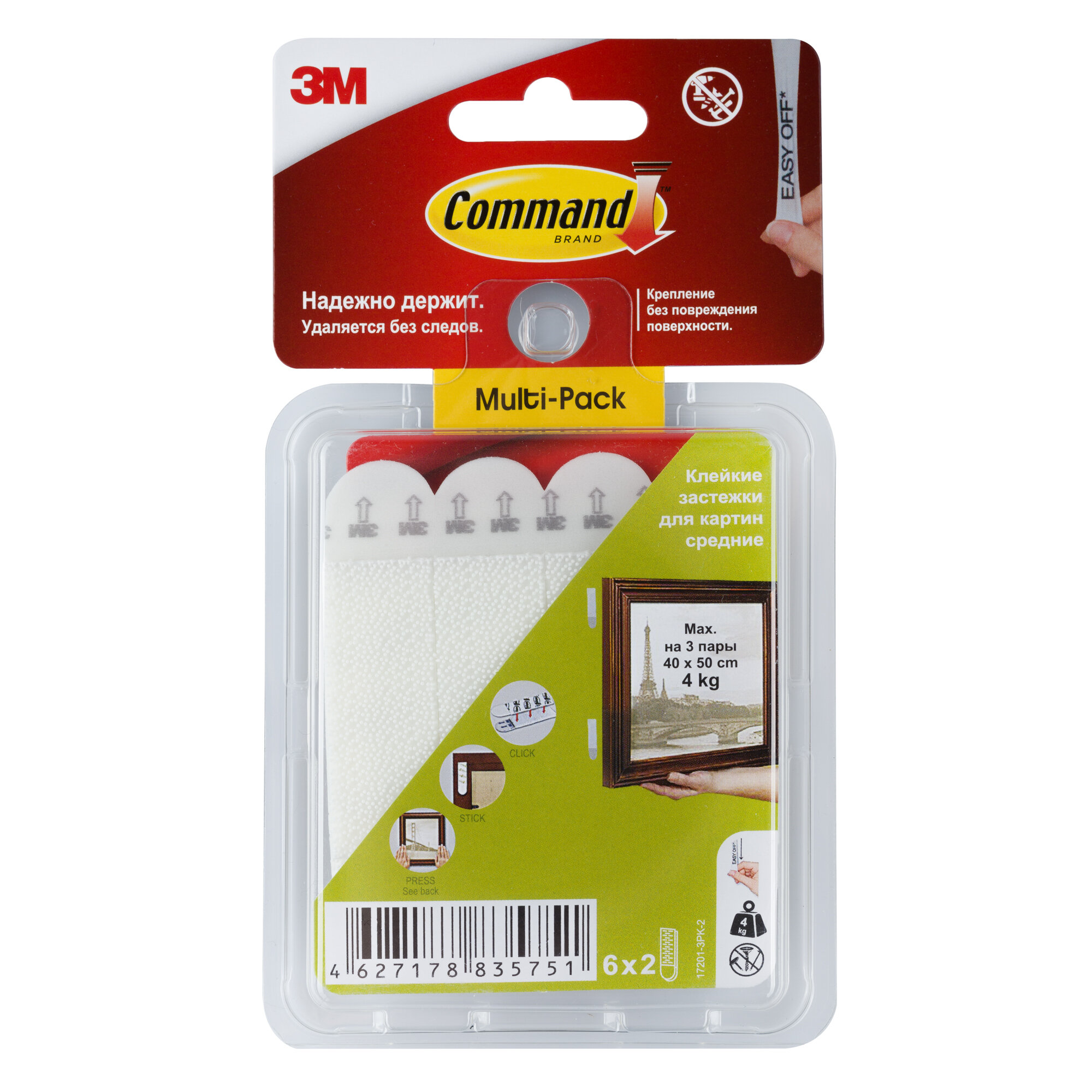 Крючки для картин самоклеющиеся Command белые средние 6 пар, 17201-3PK-2 информация: