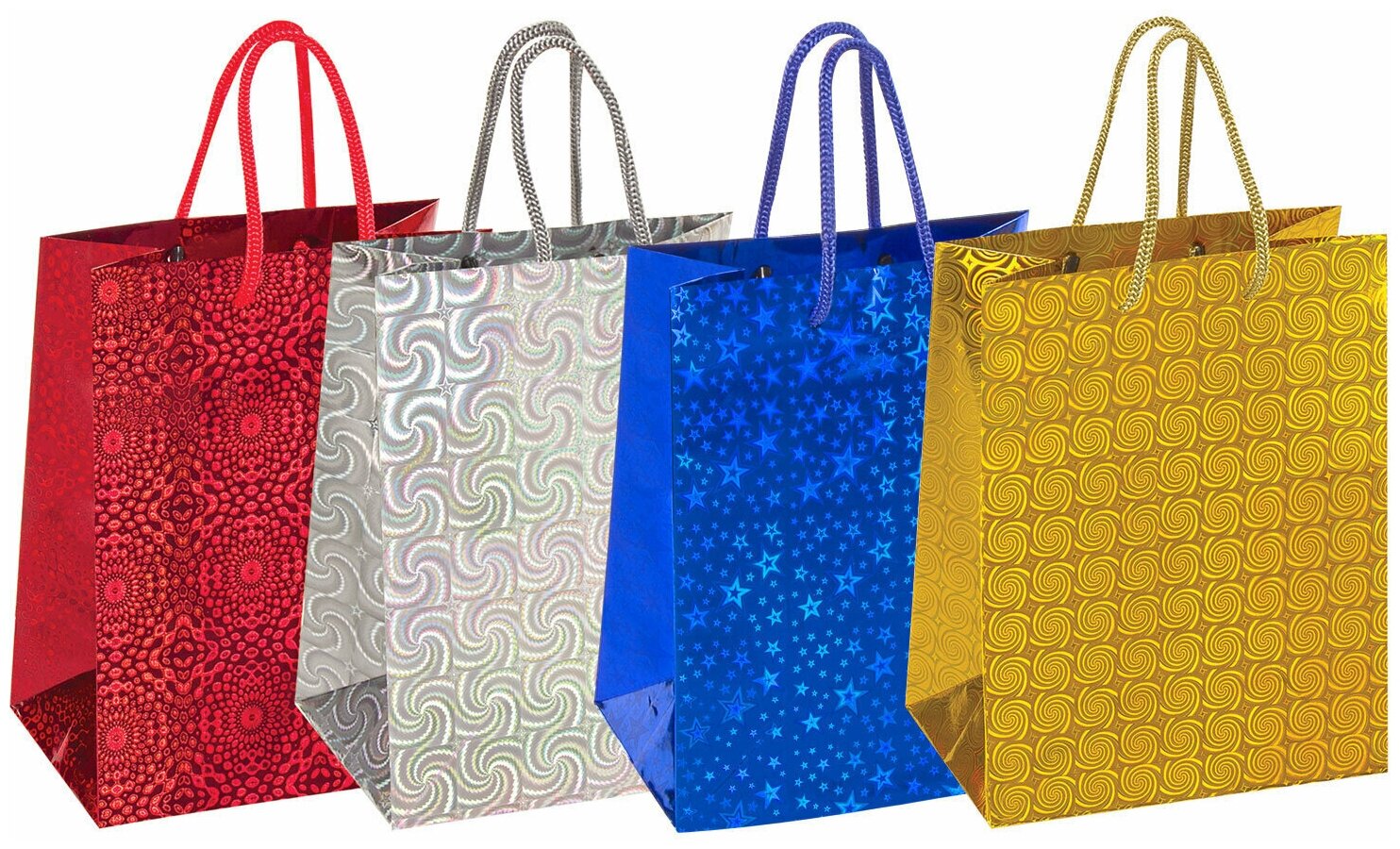 Пакет подарочный 26x13x32 см, золотая сказка голография, ассорти 4 цвета, 606607 Набор 12шт.