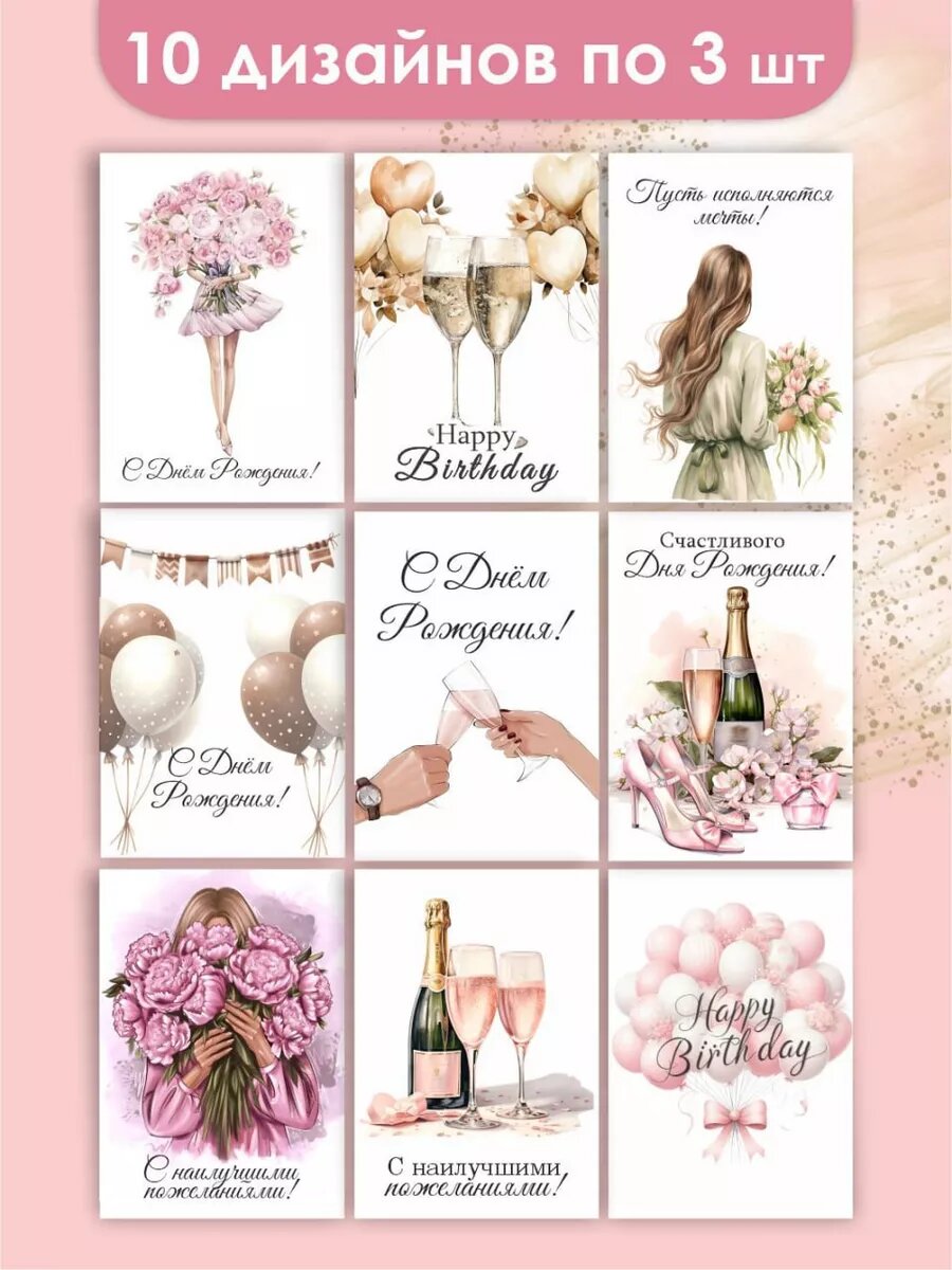 10 цен на Мини открытки с пожеланиями набор с днём рождения девушке 30 штук 10х7 см
