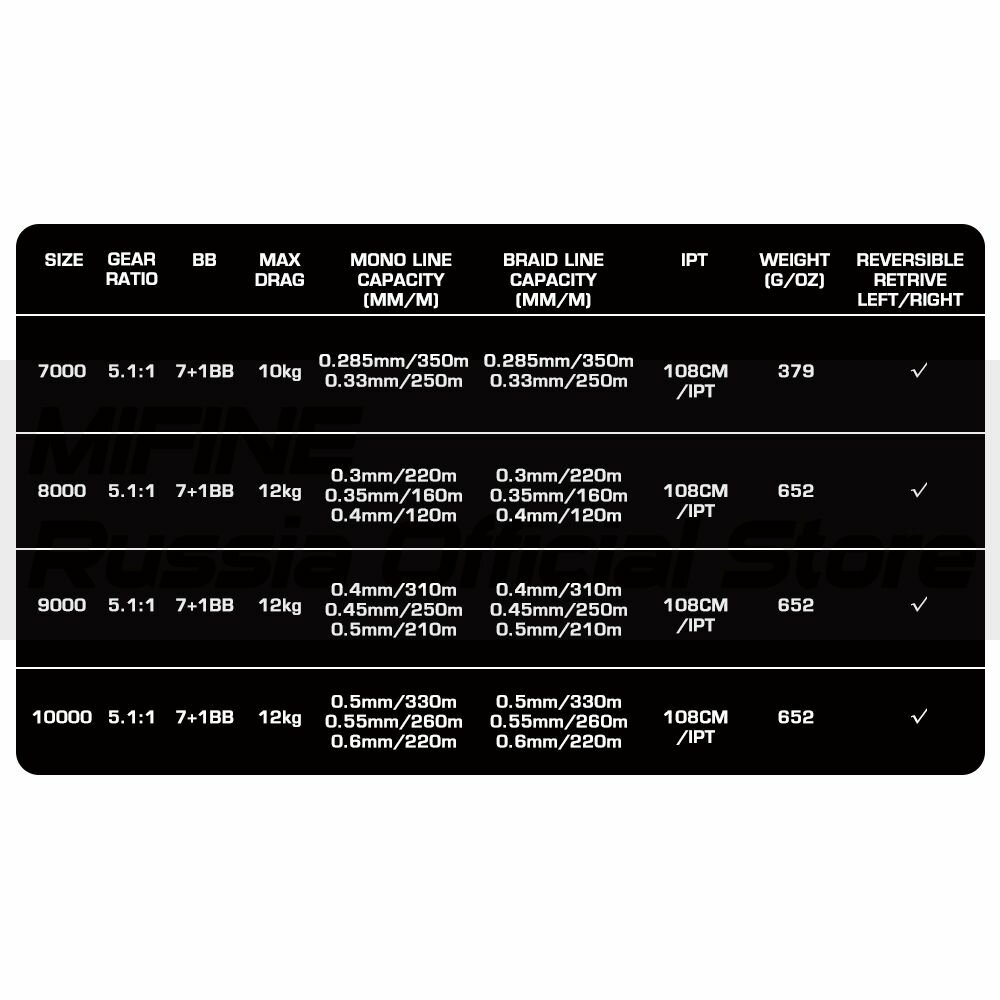 Отзывы на Катушка рыболовная MIFINE CAVALIER CARP 7000F 7+1подшипник (4:6.1), для спиннинга, для карповой ловли, для фидерной ловли