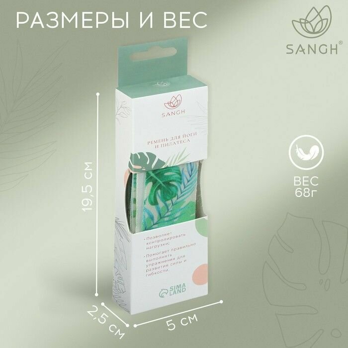 Ремень для йоги Sangh Tropics, 180х4 см, цвет зелёный информация: