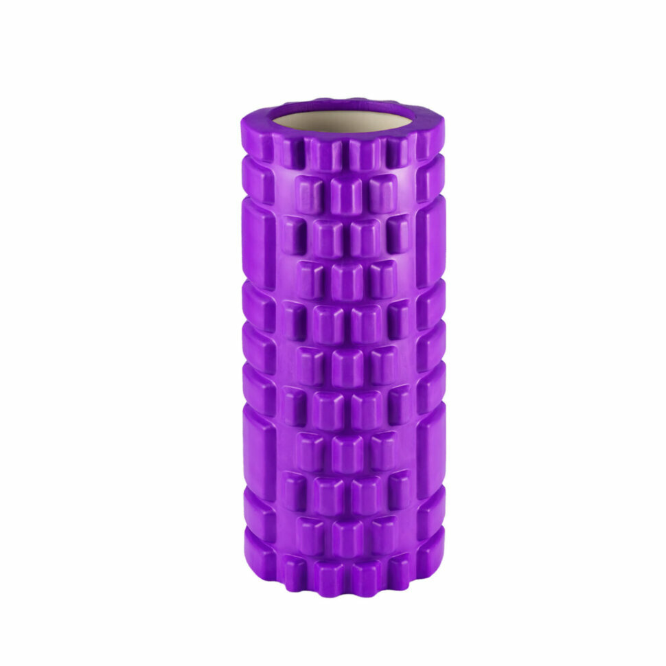 Ролик массажный для йоги, фитнеса, пилатеса, валик массажный 33*14 см, Eva, фиолетовый, с выступами, Daswerk, 680023