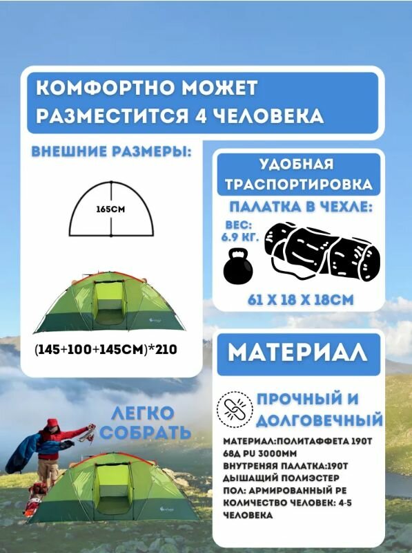 | Материал внутренней палатки | 190T Полиэстер |