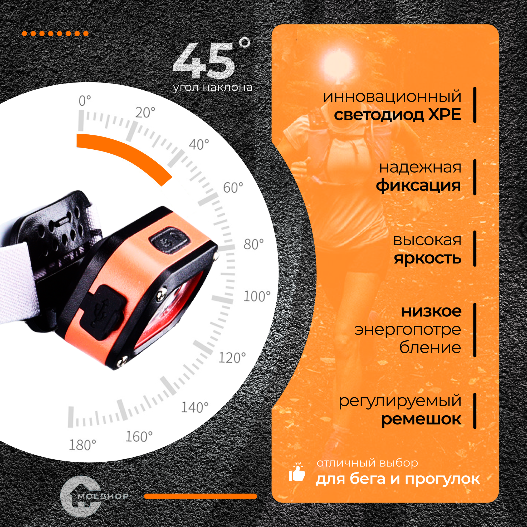 10 цен на Фонарик налобный оранжевый/Фонарь аккумуляторный
