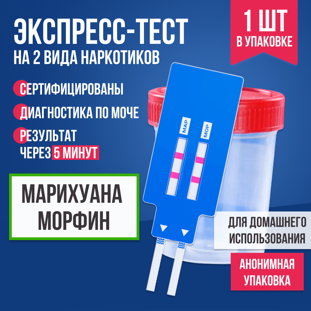 Экспресс-тест на 2 вида наркотиков, 1 шт. / полоска на марихуану и морфин в организме, экспресс-тест медицинский информация: