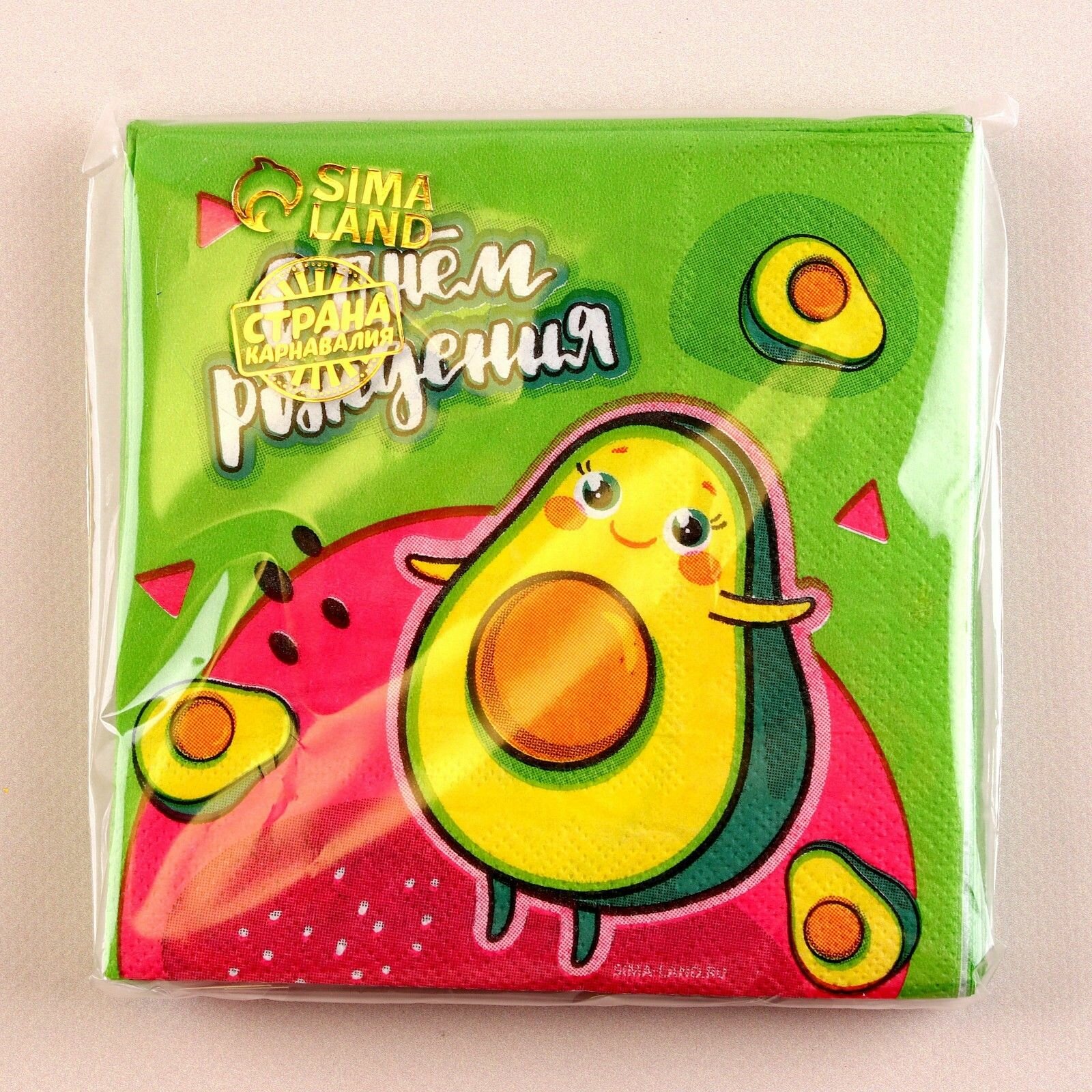 Салфетки бумажные 25 х 25см "С днем рождения" авокадо (набор 20 шт) информация: