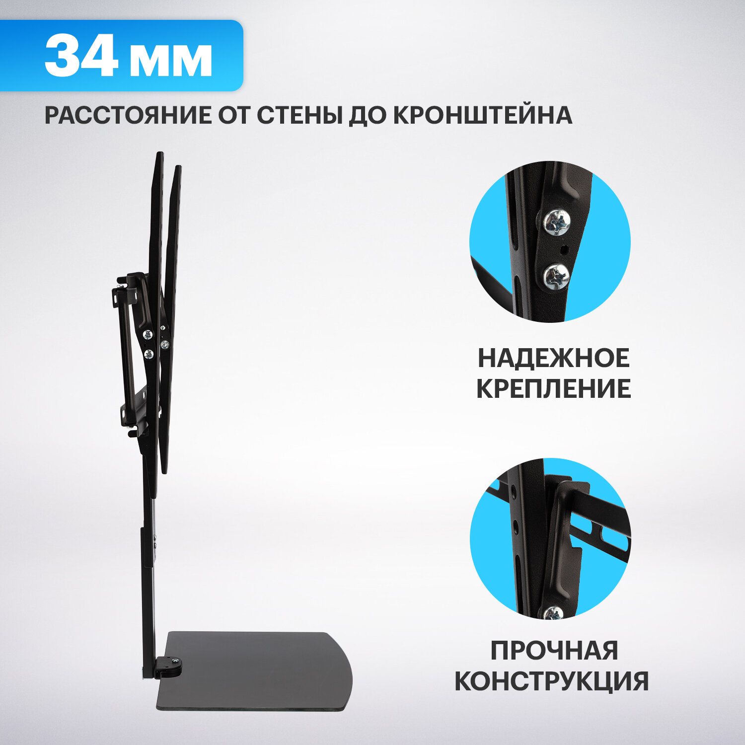 Отзывы на Кронштейн фиксированный REXANT HOME для телевизора 32"-50" с полкой для медиа-оборудования