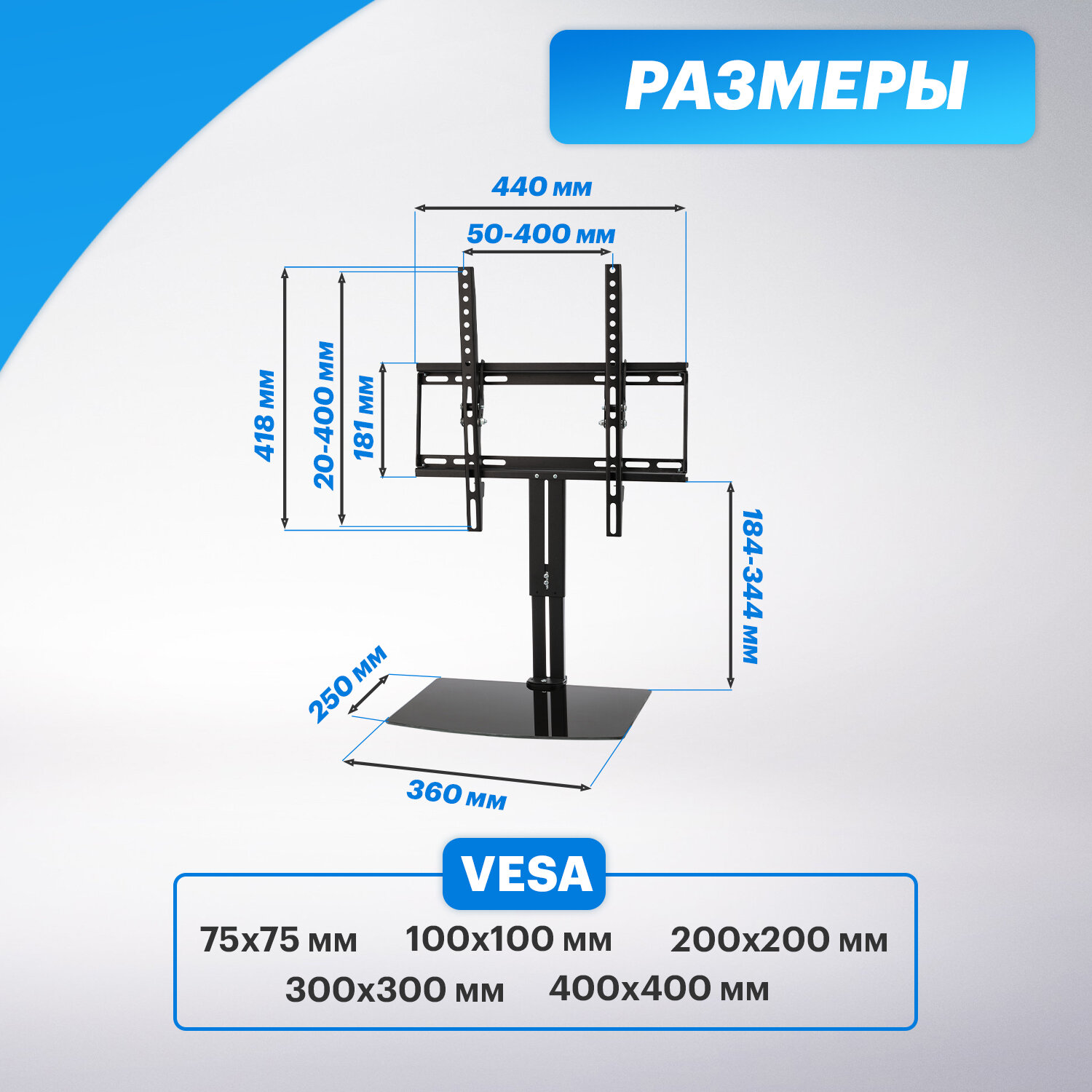 | Стандарт Vesa | 100x100 мм / 100x150 мм / 100x200 мм / 150x100 мм / 150x150 мм / 200x100 мм / 200x200 мм / 200x300 мм / 200x400 мм / 300x200 мм / 300x300 мм / 300x400 мм / 400x200 мм / 400x300 мм / 400x400 мм / 75x75 мм |