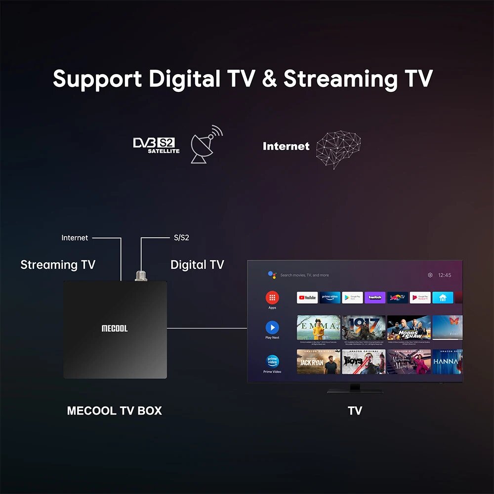 Mecool KT1 DVB S2 телевизионная коробка с Bluetooth Android 10 Amlogic S905X4-B 4K 2T2R Dual WIFI BT Media Player Set-Top Box
