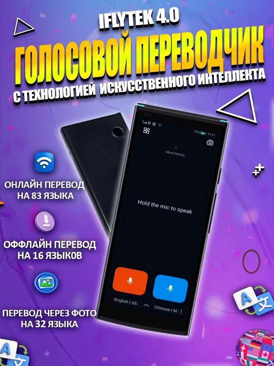 10 цен на Переводчик iFlytek 4.0 без интернета + чехол в подарок
