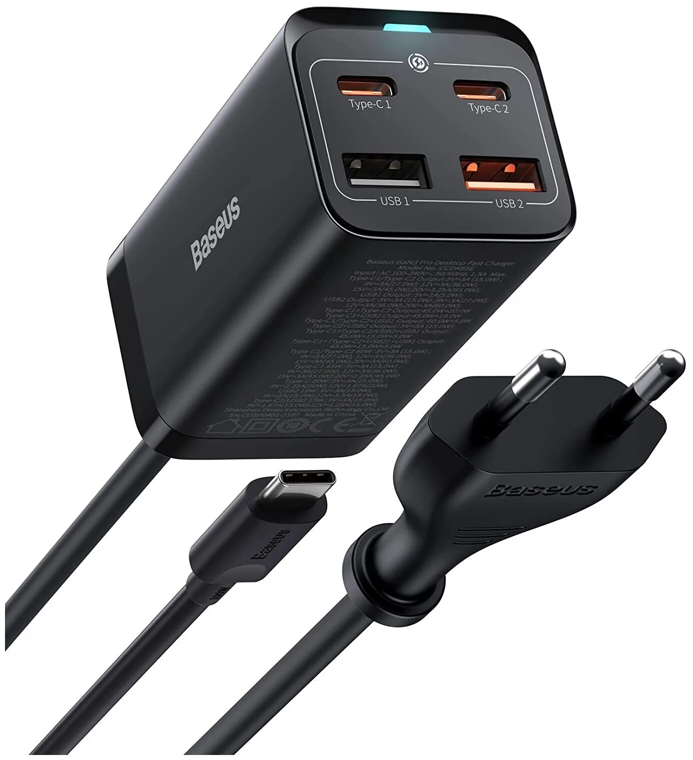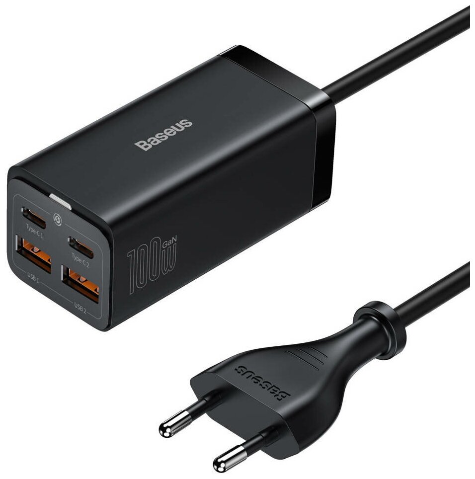 Сетевое зарядное устройство Baseus GaN3 Pro Desktop Fast Charger, 2C+2USB, 100W EU + Cable Type-C to Type-C 100W 1м, Черный, (CCGP000101)