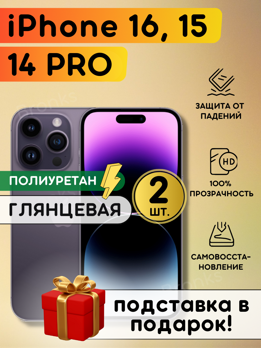 Комплект из 2 шт. Гидрогелевая полиуретановая плёнка на iPhone 16, iPhone 15, iPhone 14 Pro информация: