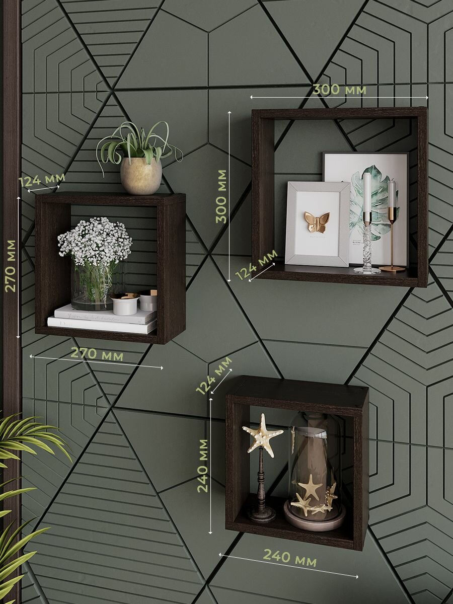 Настенные полки венге 3 шт. в прихожую и мебель для дома 24х24 см. 27х27 см. 30х30 см. 1 090 ₽