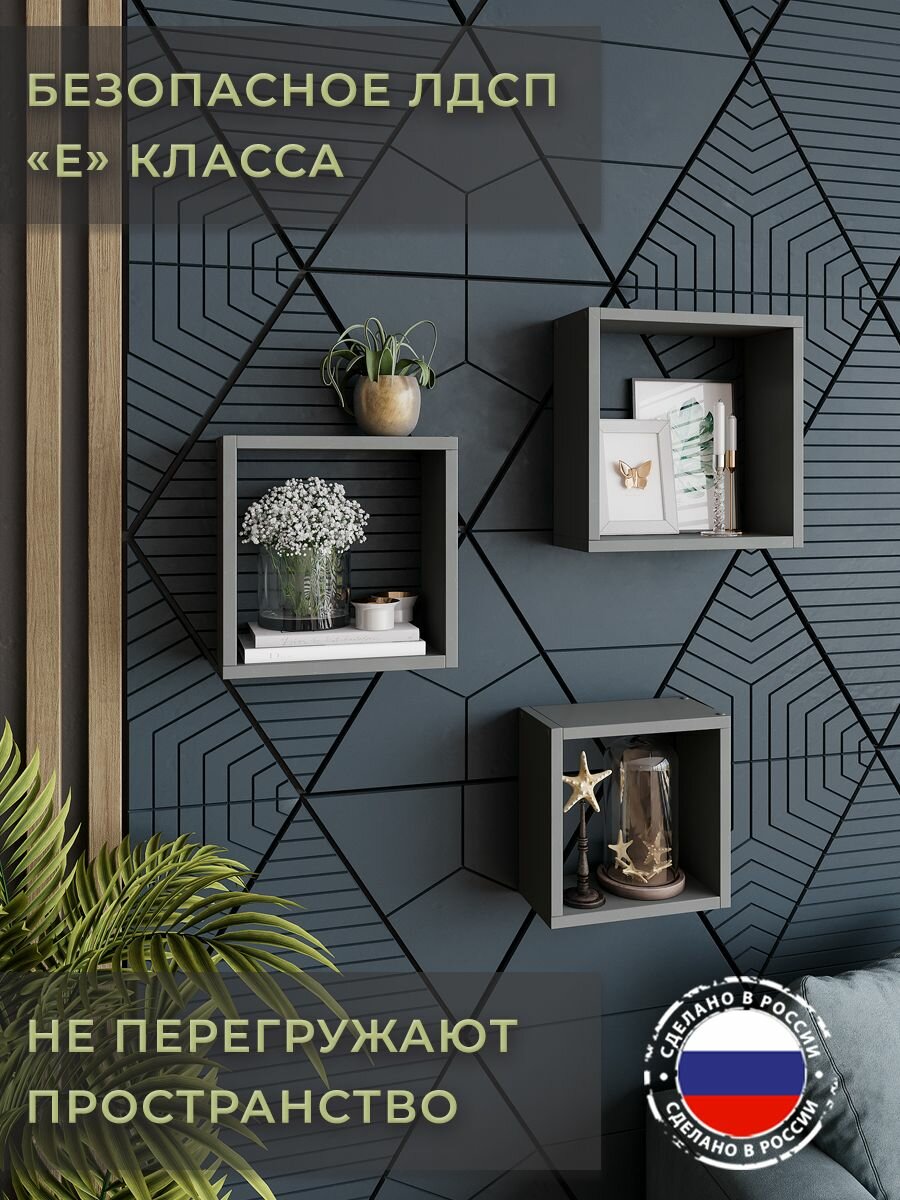 Настенные полки вулканический серый 3 шт. мебель для дома 24х24 см. 27х27 см. 30х30 см. 1 190 ₽