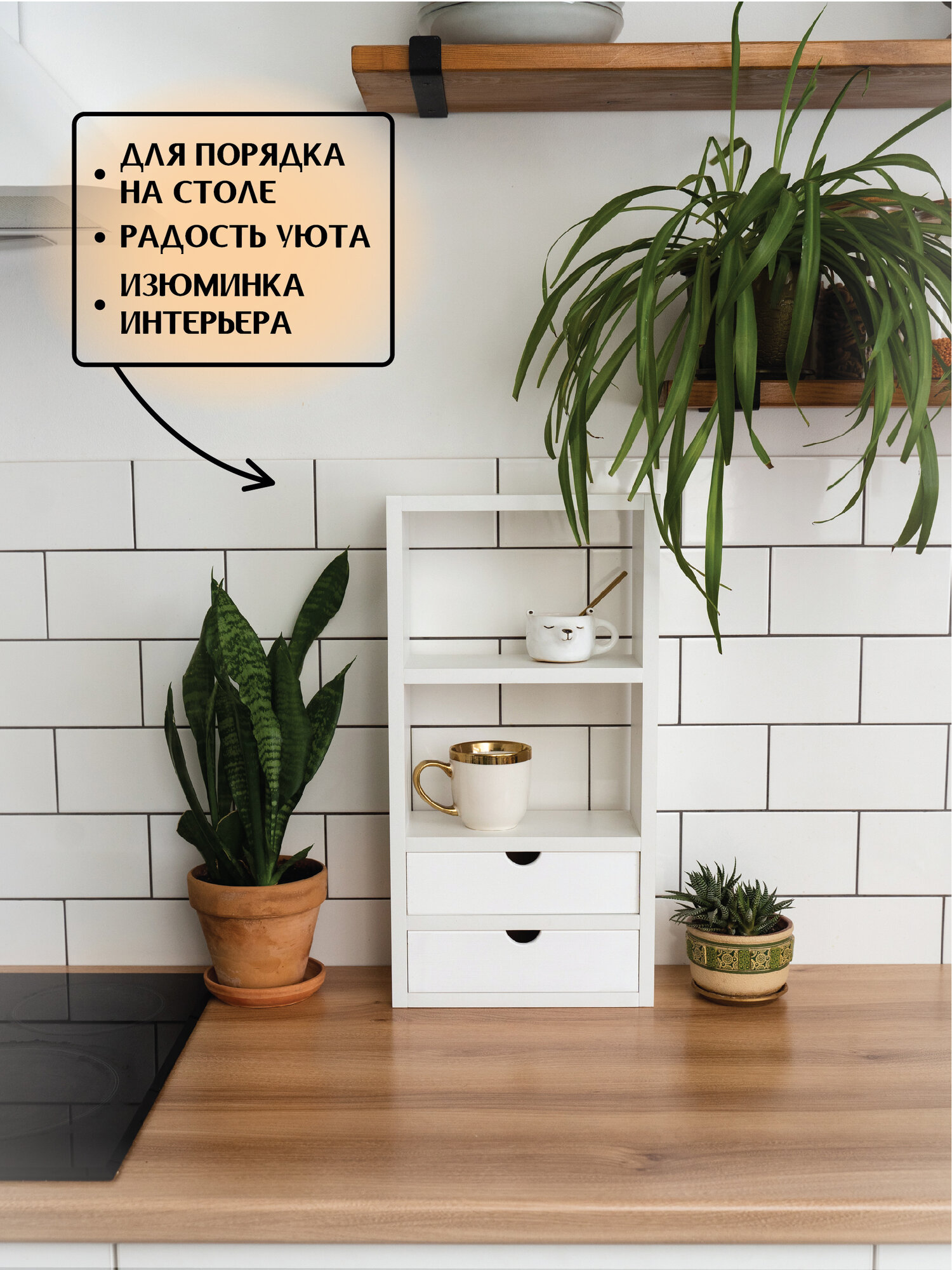Настольная полка из ЛДСП и натурального дерева в белом цвете, с 2 ящиками 2 513 ₽