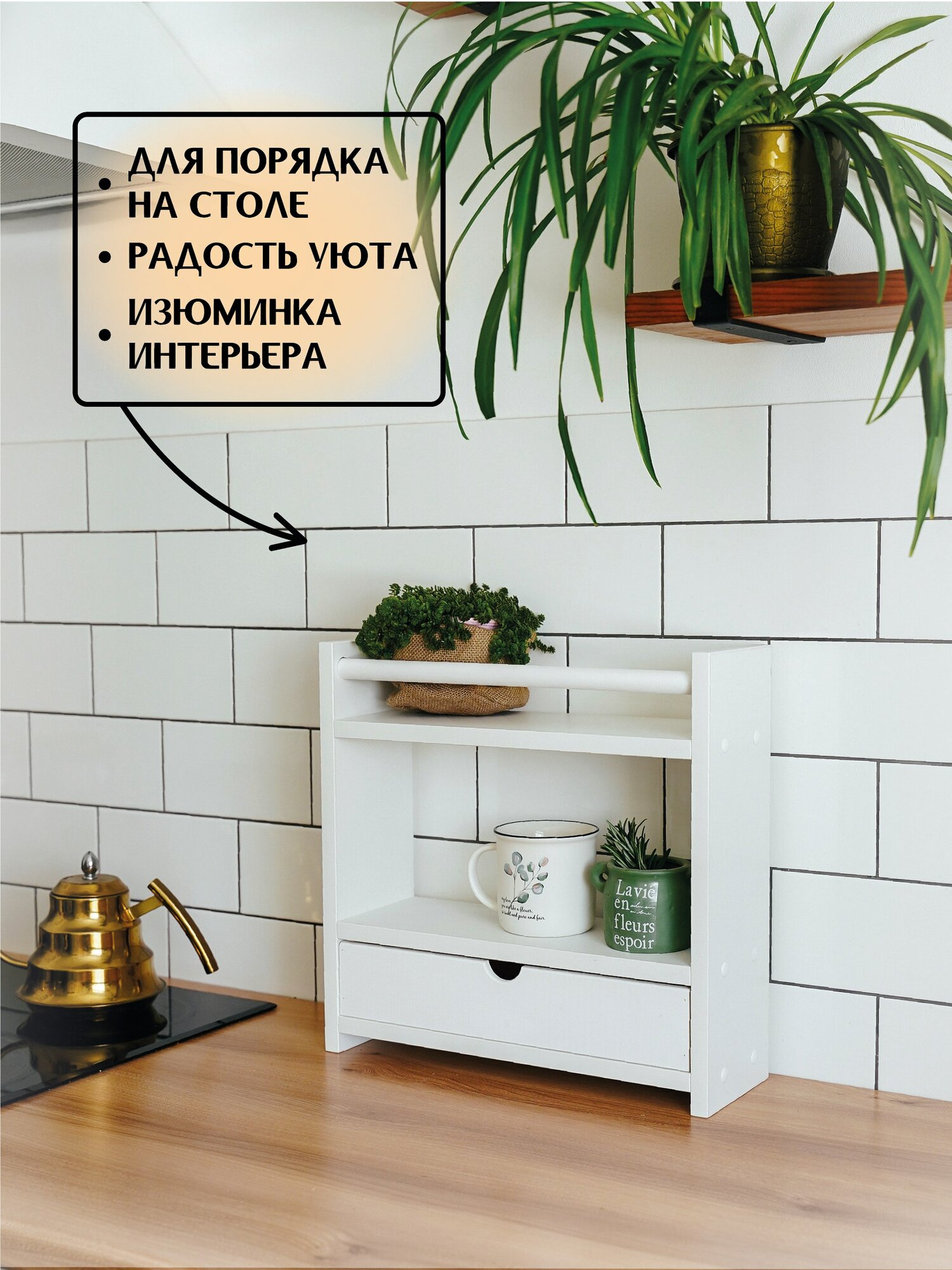 Настольная полка из лдсп с 1 ящиком из натурального дерева 2 306 ₽