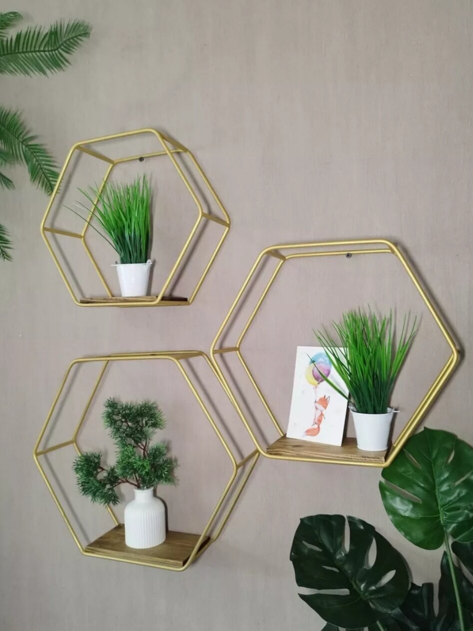 Отзывы на Настенные полки "Соты", для гостиной, спальни, кухни, прихожей, 3 шт, золото