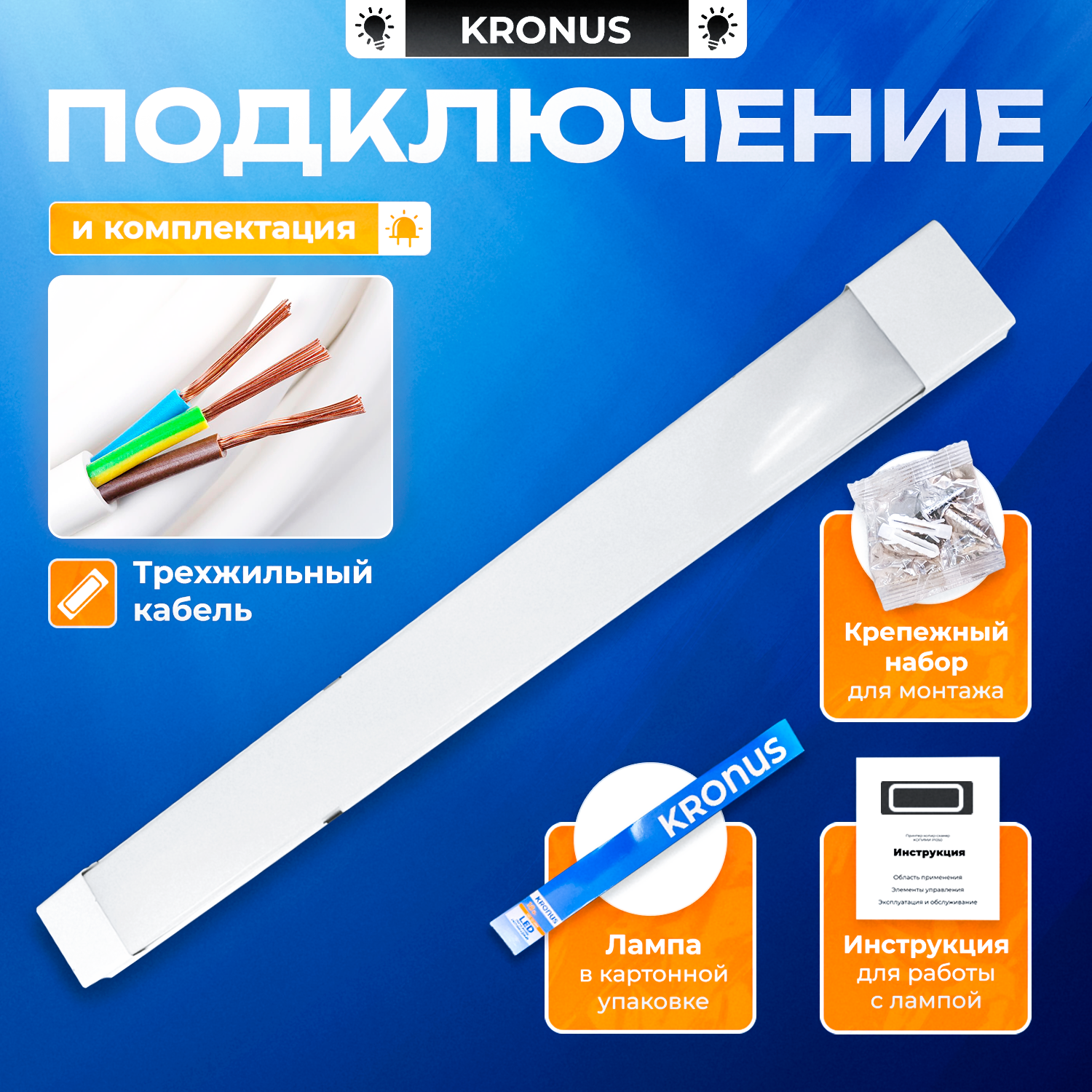 Отзывы на Светильник светодиодный линейный KRONUS 18Вт 4000К 185-265V IP40 600*75*22 мм