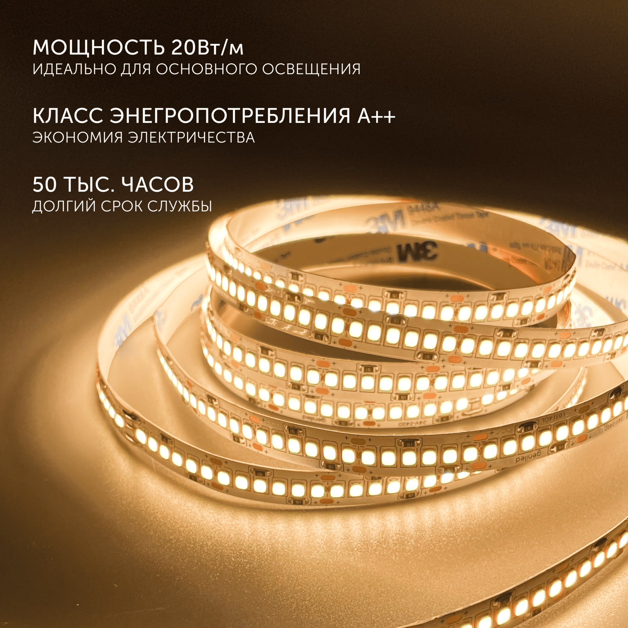 Светодиодная лента 3м 24В 20Вт/м 3000К IP33 теплая подсветка 240 led/m Geniled 3 243 ₽