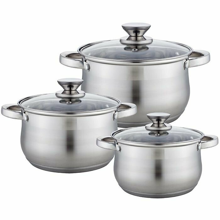 Набор кастрюль WEBBER BE-614/6 6 предметов, 2,1 л, 2,9 л, 3,9 л, хром