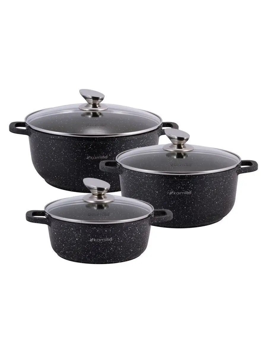 Набор посуды из литого алюминия 7 предметов Kamille KM-4430 с прихватками (черный) 10 440 ₽