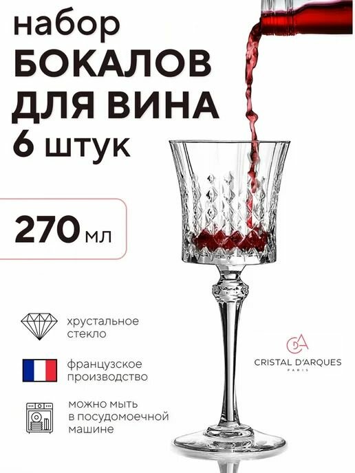 Набор фужеров (бокалов) для вина леди даймонд 270мл 6шт, ECLAT CDA PARIS 4 085 ₽