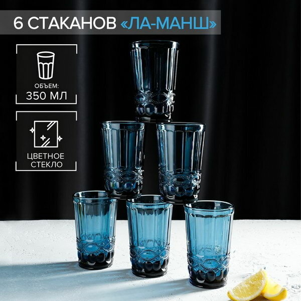 Набор стаканов "Ла-Манш", 350 мл, 8x12.5 см, 6 шт, стекло, цвет синий информация: