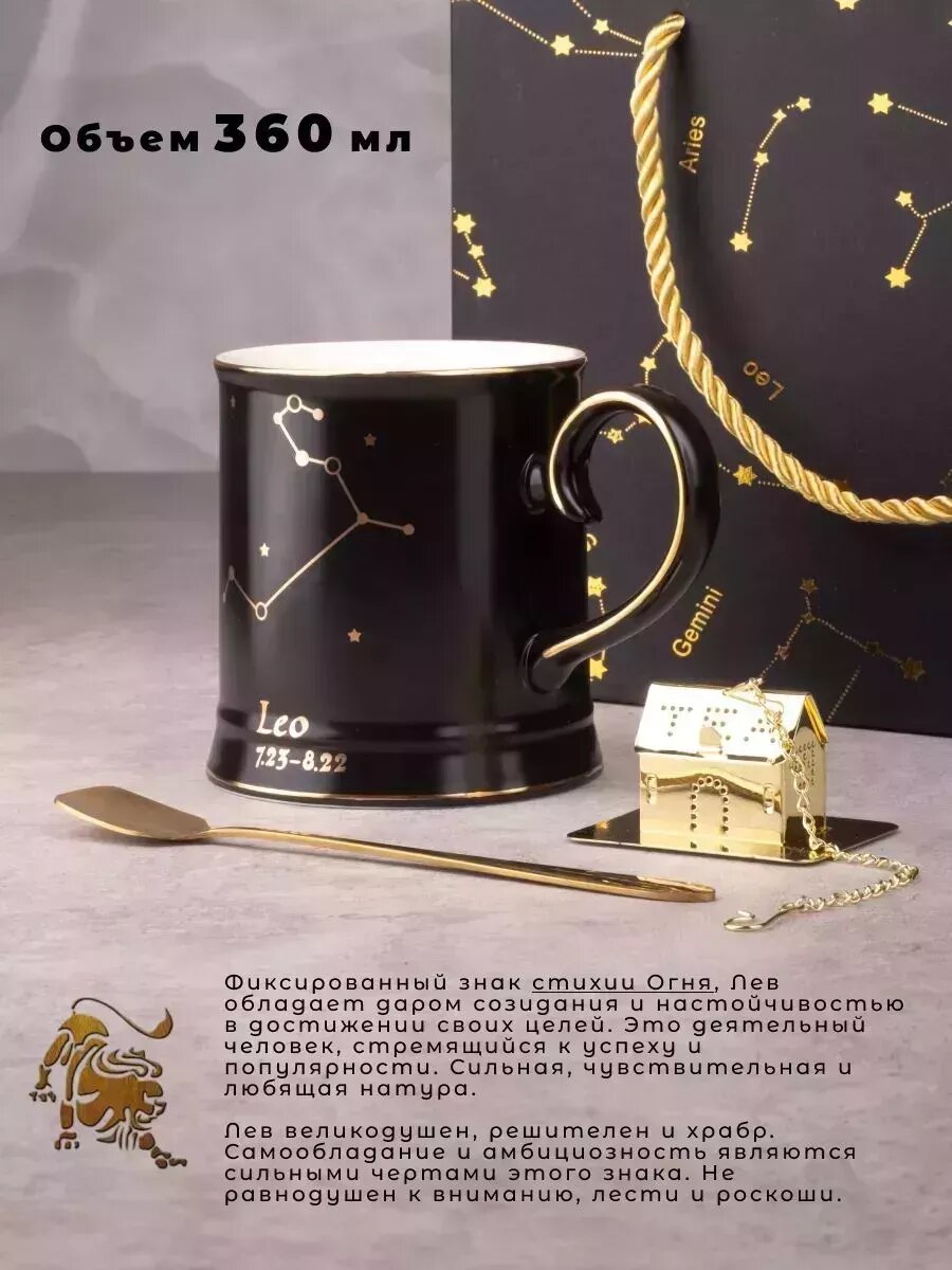 Кружка 360 мл с ложкой и фильтром Lenardi "Водолей" (подарочная упаковка) / 357828 1 355 ₽