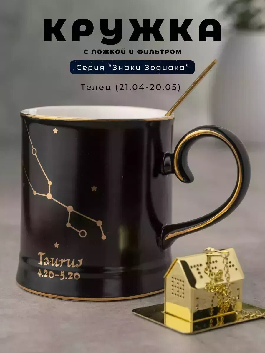 Кружка 360мл с ложкой и фильтром телец Фарфор Lenardi (195637) информация: