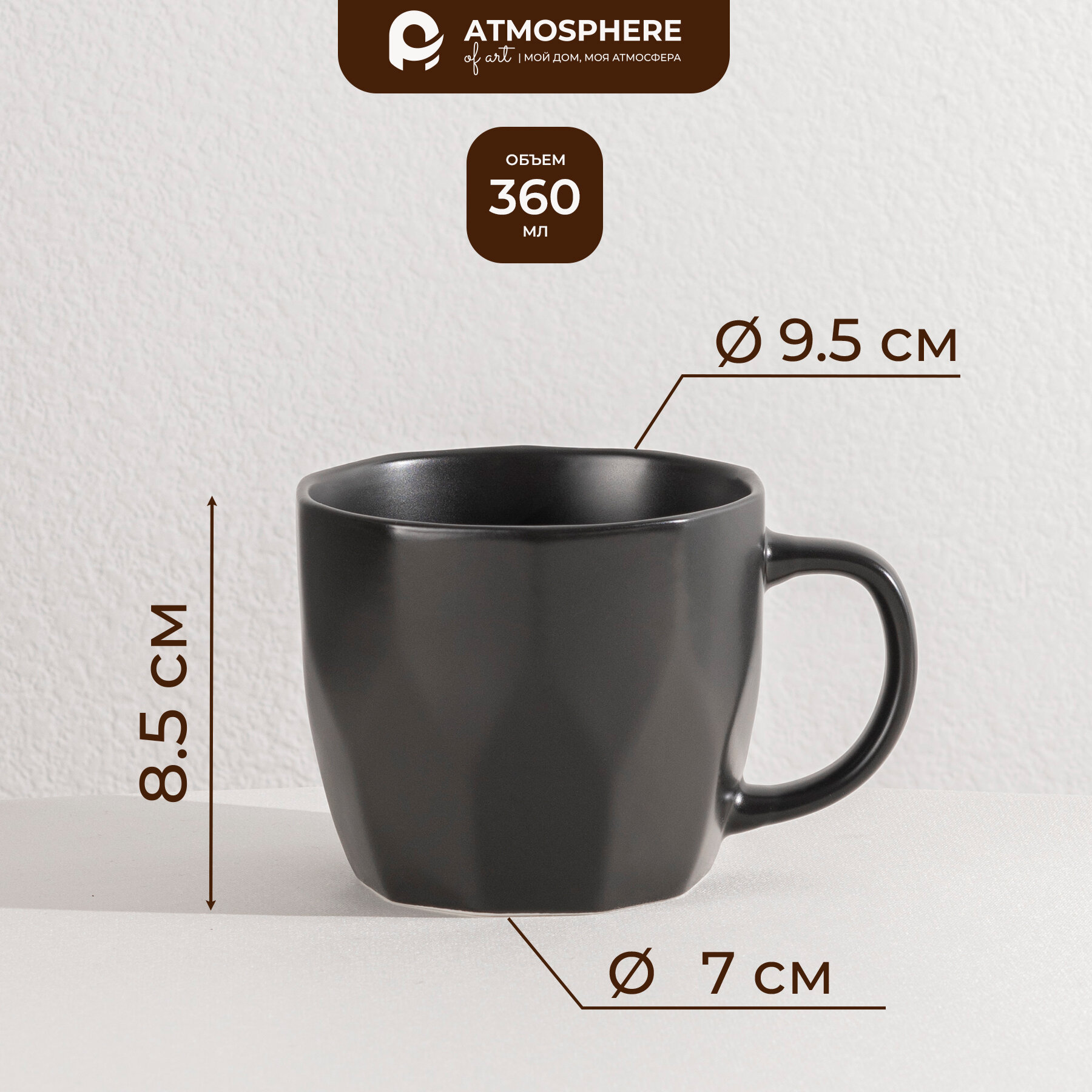 Набор кружек фарфоровых Atmosphere OF Art Geometry Black AT-K1485-5, 360 мл, 2 штуки 855 ₽