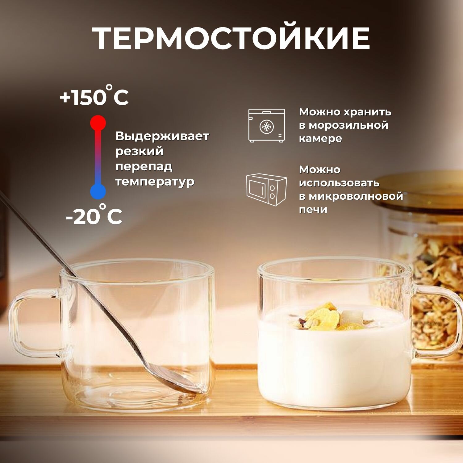 Прозрачные чайные стеклянные чашки с ручкой по 2 шт. 100мл SAMADOYO информация: