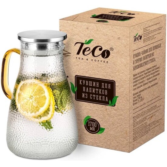 Кувшин для горячих и холодных напитков Teco TC - J1700-H, 1700 мл, из стекла c крышкой информация:
